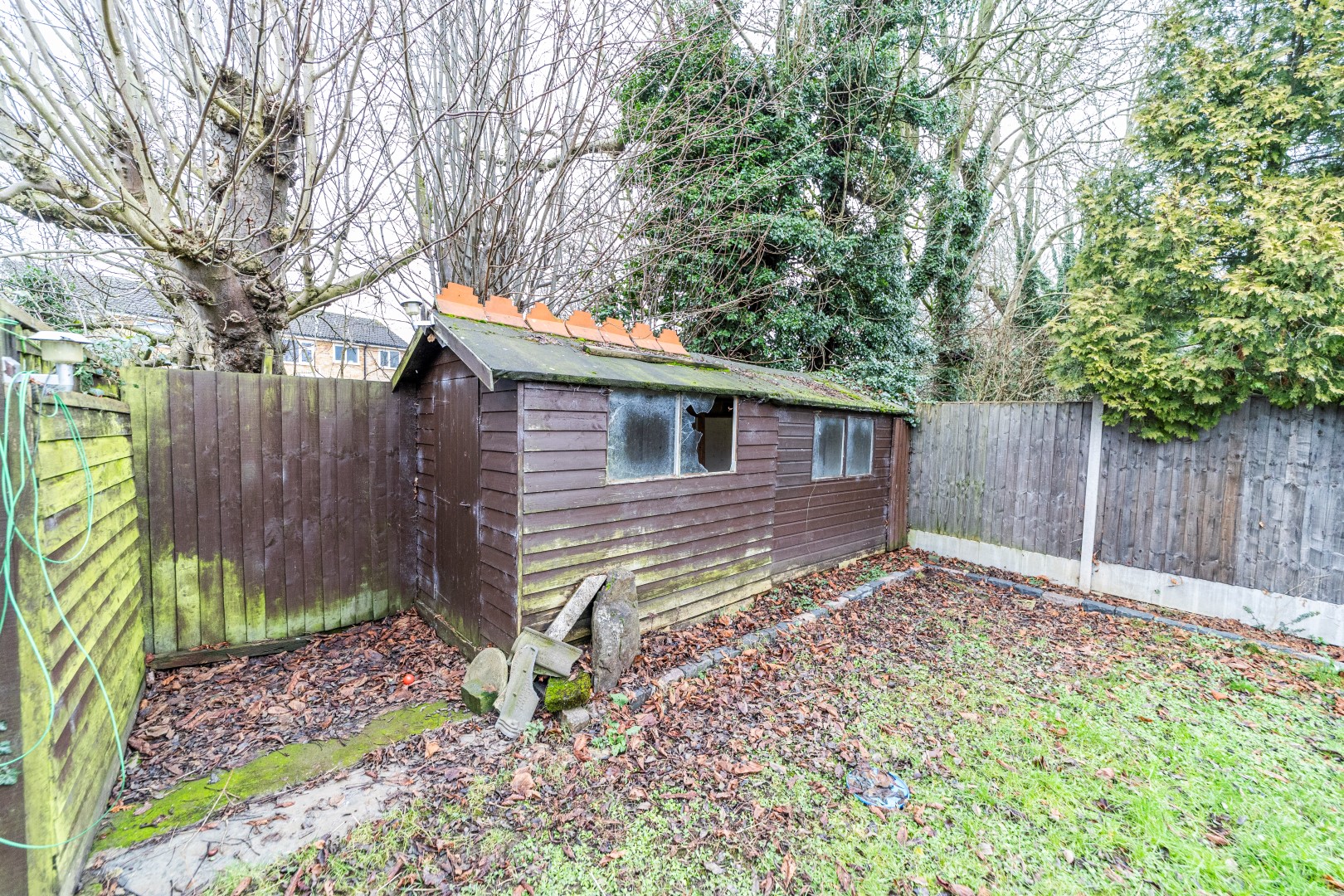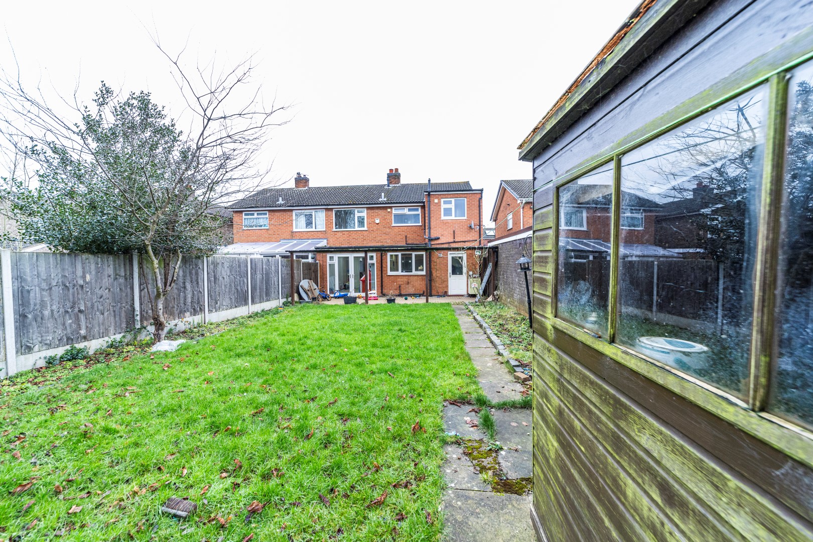 Rear - There is a rear garden mainly laid to lawned and covered patio area two timber sheds, external power socket, outside tap and a security light.