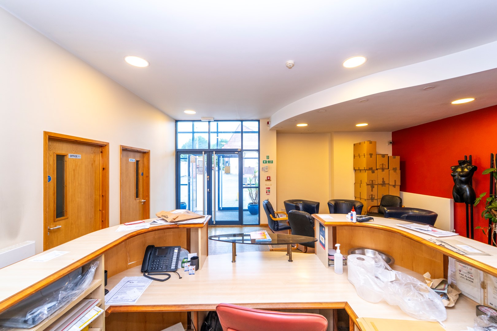Leo Properties have this very well presented Ground floor & 1st floor offices Total Approximately 2756 SQFT situated on the busy main road in popular location labour catchment area on Gipsy Lane. The Premises briefly consists of welcoming reception area, mixed open plan offices fitted with carpets, meeting room, kitchen facilities, and suspended ceiling with lighting, gas fire central heating, ladies /gents facilities. All main services connected and nine car parking spaces secured with gates at front.