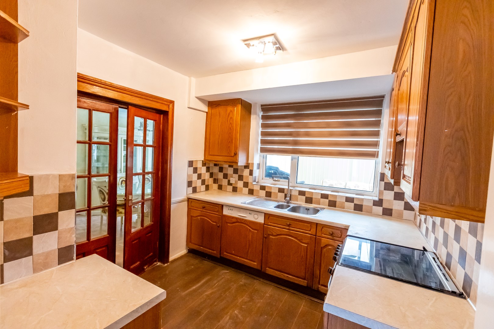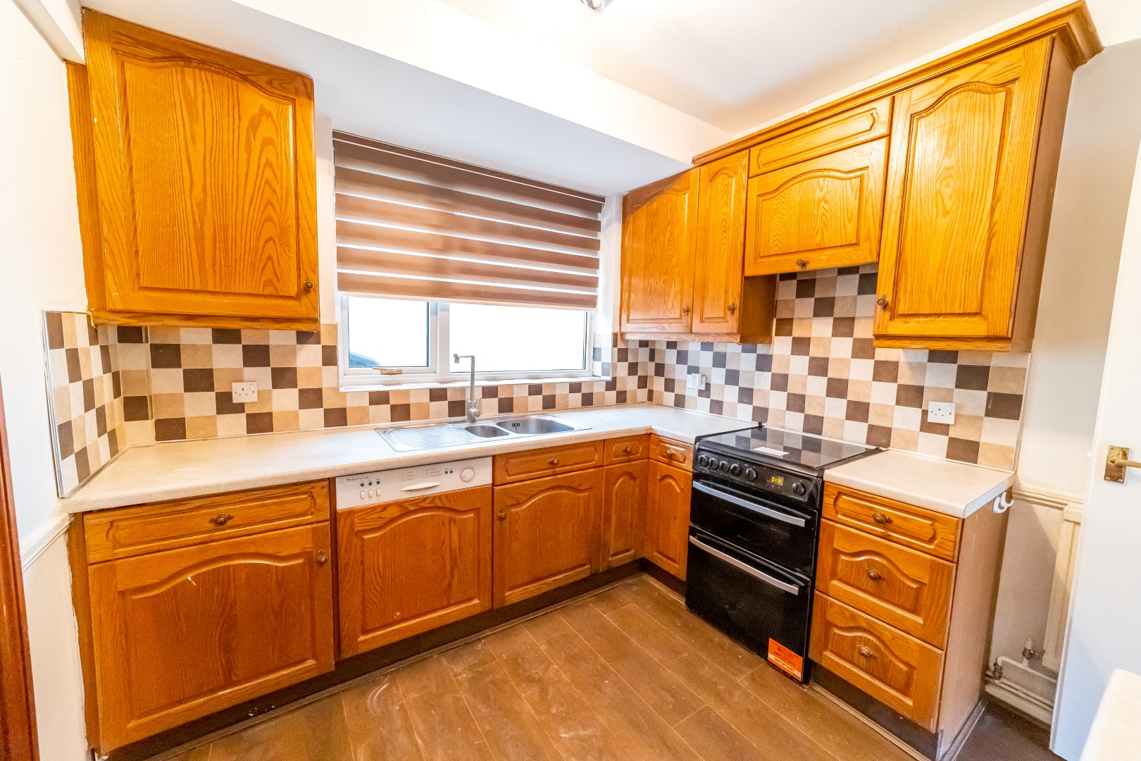 Kitchen: 9'5" x 9'5" fitted with range of floor base and wall mounted units, fitted appliances, tiles flooring