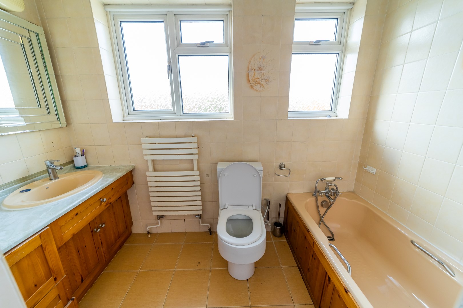 Bathroom: Fitted with panelled bath low flush Wc, wash basin, shower cubical, fully tiled towel rail window to rear elevation.