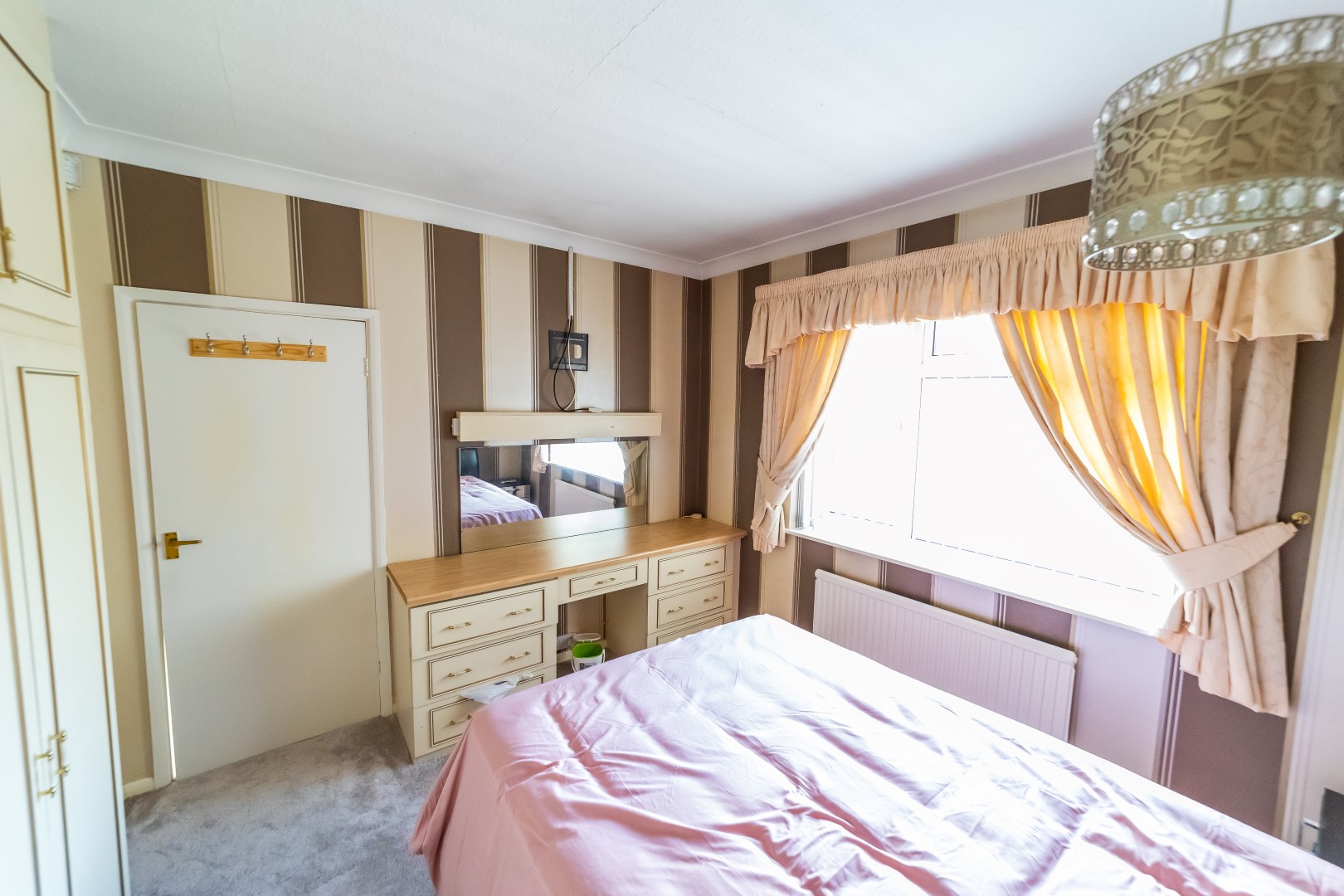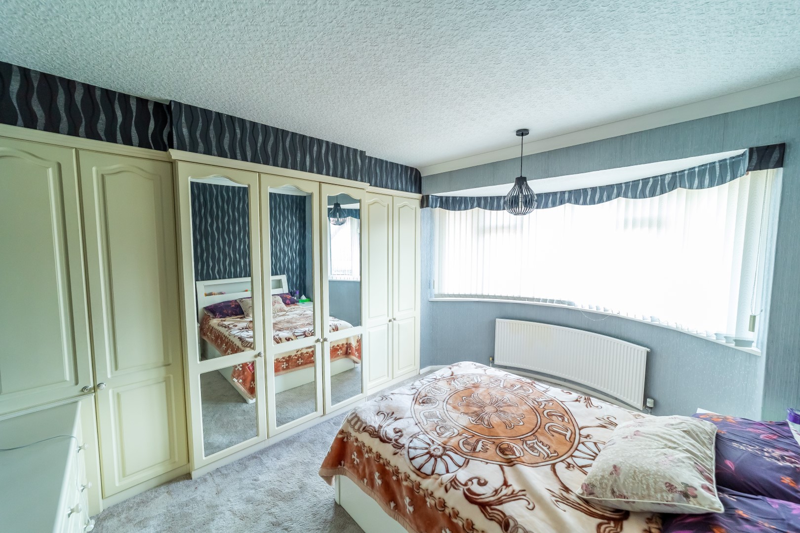 Bedroom One: 12' x 10'9" window to front elevation, fitted wardrobes, radiator, power point