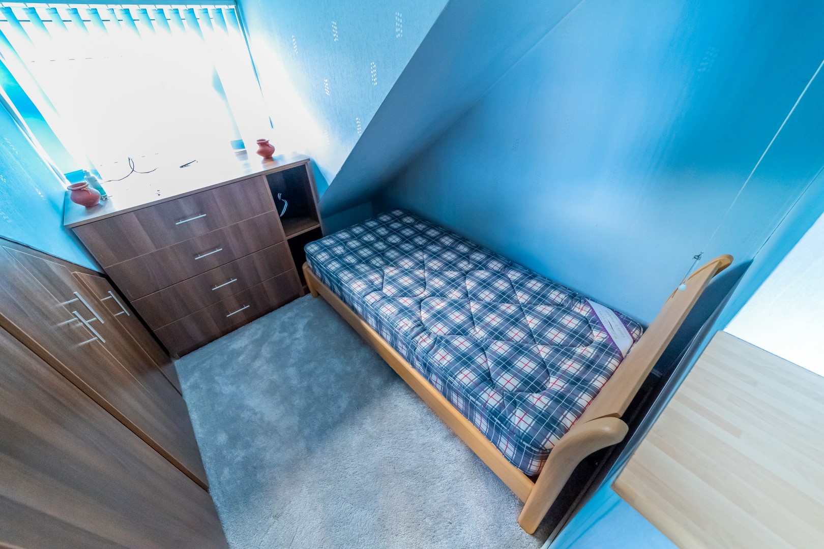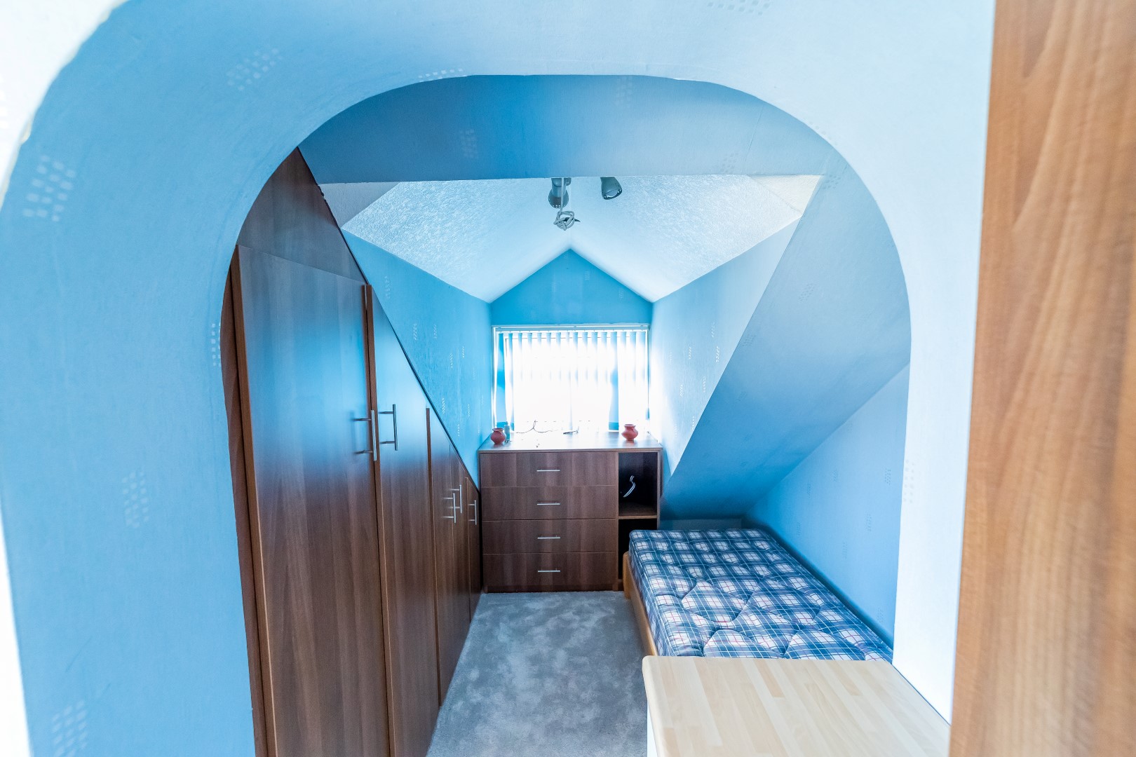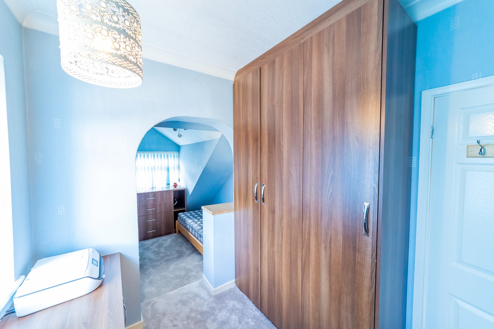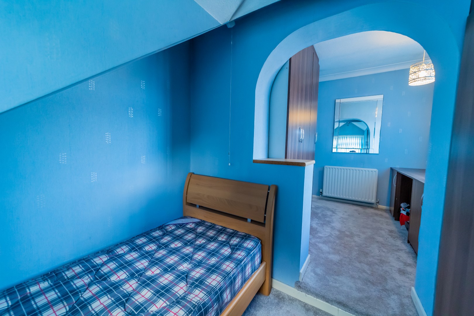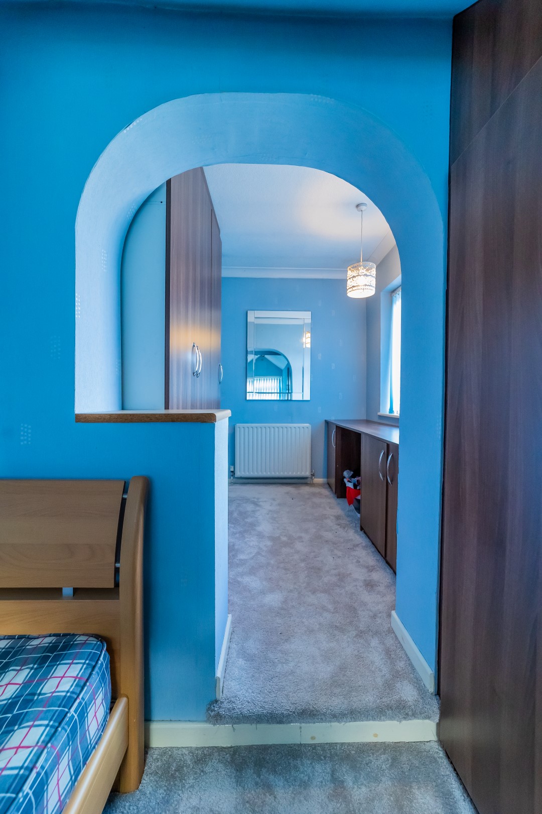 Bedroom Three: 17'9" x 7' with window to front elevation, radiator, wardrobes