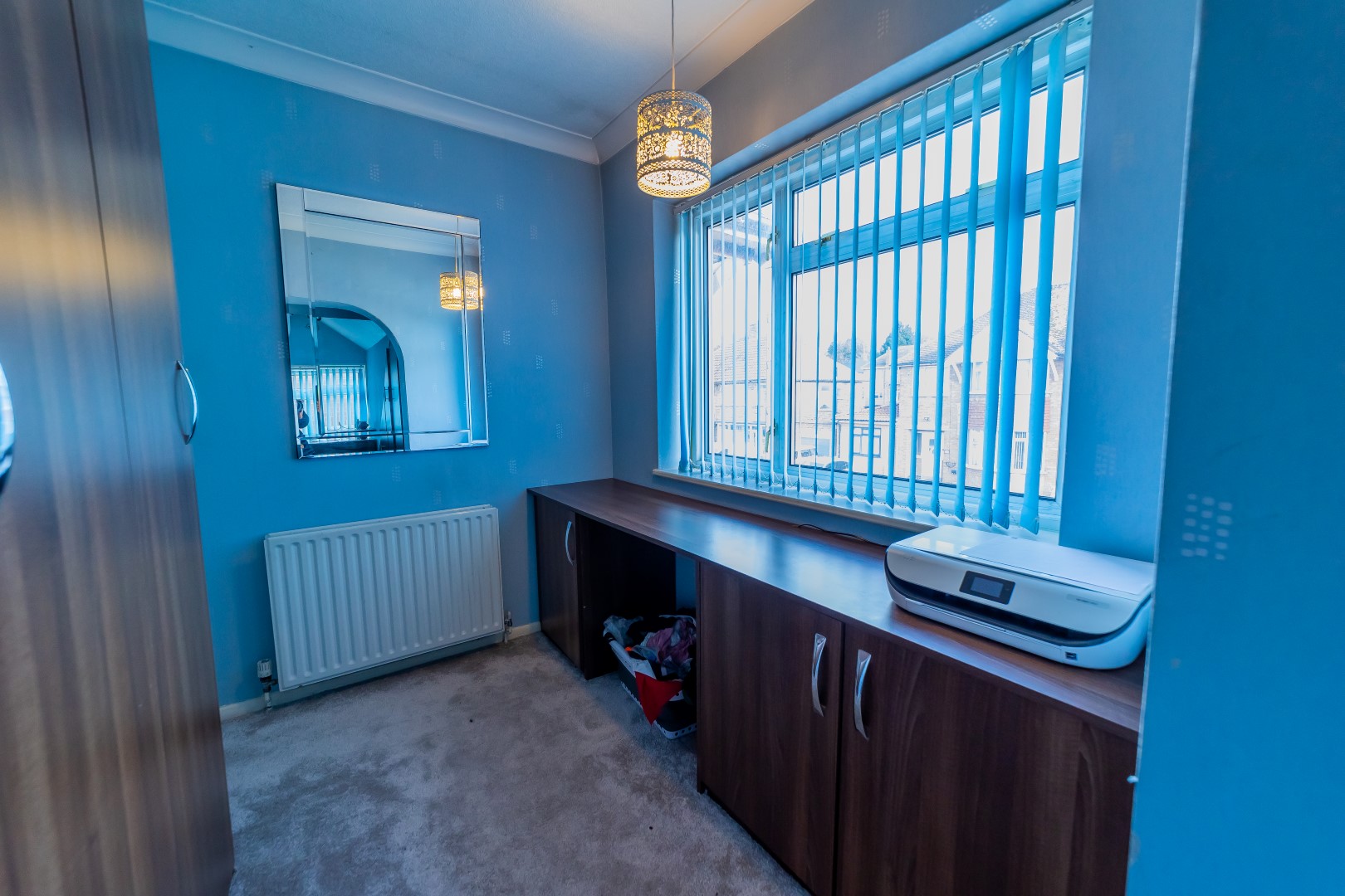 Bedroom Two: 12'2" x 11' window to rear elevation, radiator, powerpoint, fitted with wardrobes